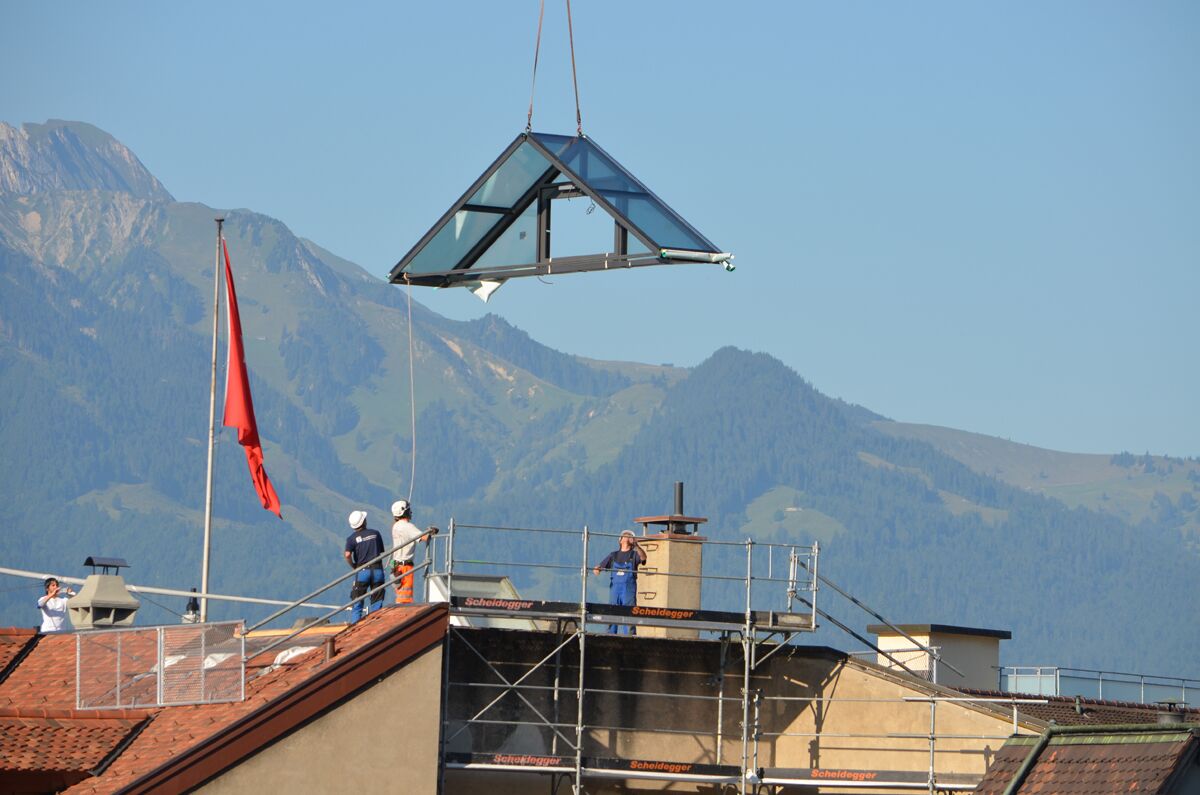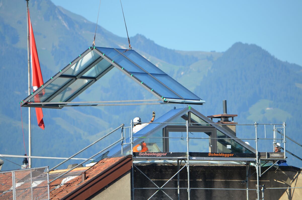 Zu unserer Kernkompetenz gehören zudem Sanierungen von bestehenden Dachoberlichkonstruktionen. Undichte oder ungedämmte Verglasungen sind ein grosses Problem und birgen grosses Schadenpotenzial.