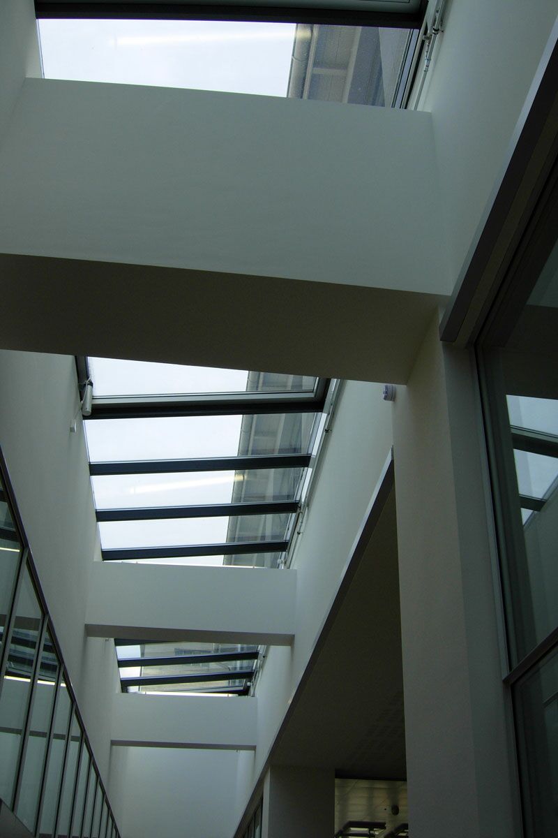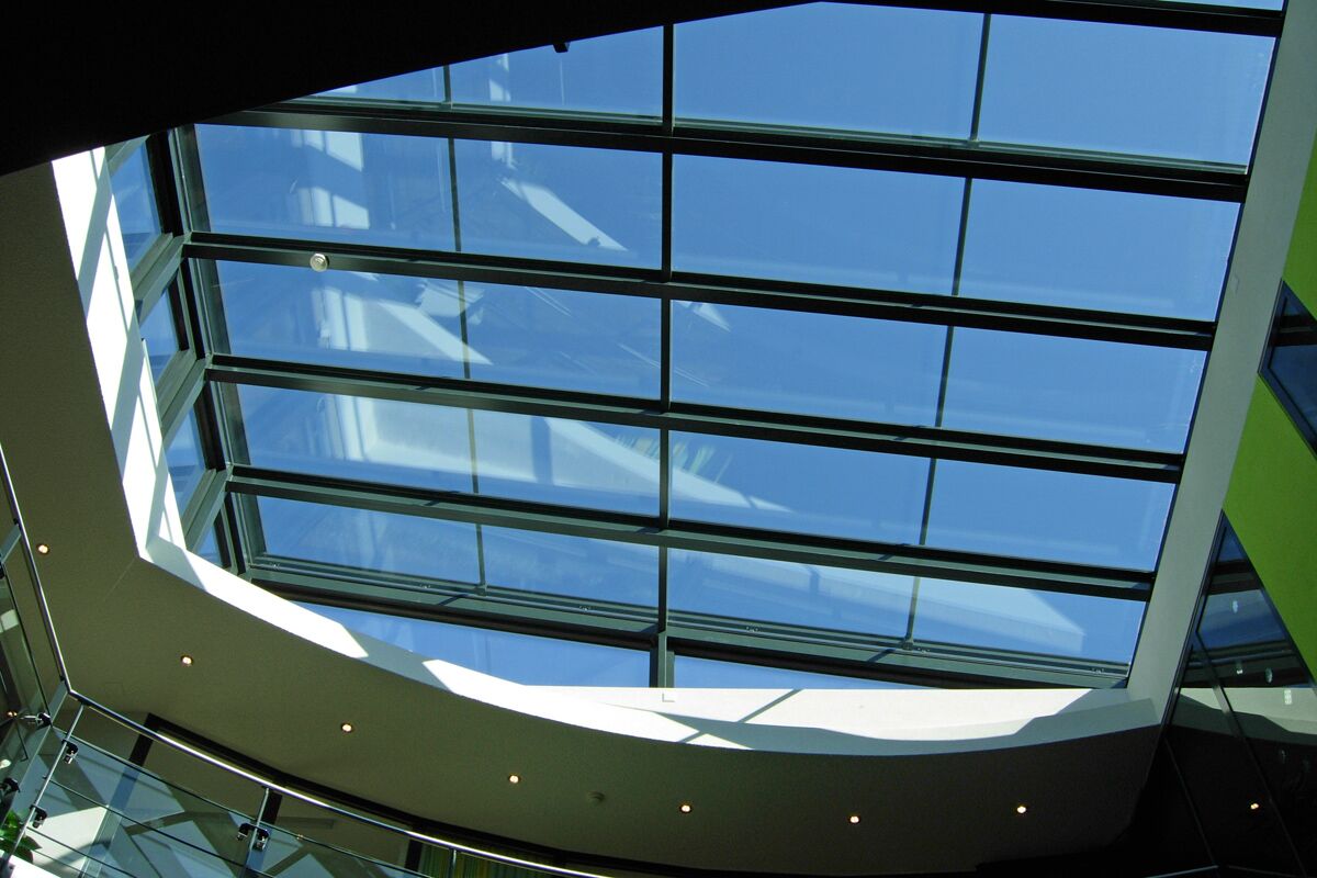 Oberlichtverglasungen werden in hochdämmenden Pfosten-Riegelsystemen erstellt. Eingesetzt werden Sicherheits-Isoliergläser, welche den bauphysikalischen Anforderungen entsprechen. Unsere Konstruktionen weisen stets mehrere Dichtebenen auf. Diese stellen sicher, dass die Entwässerung des Systems nachhaltig funktioniert.