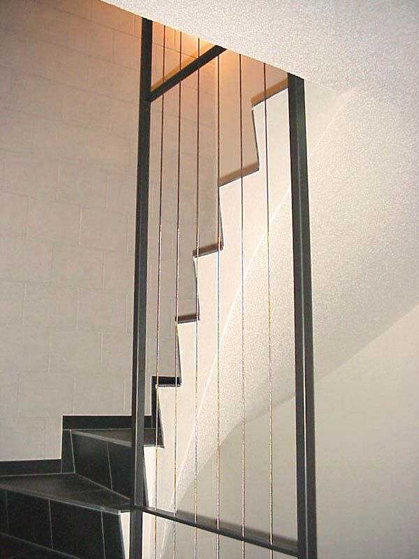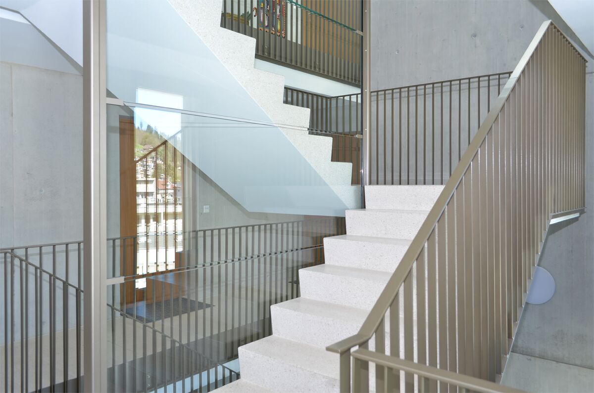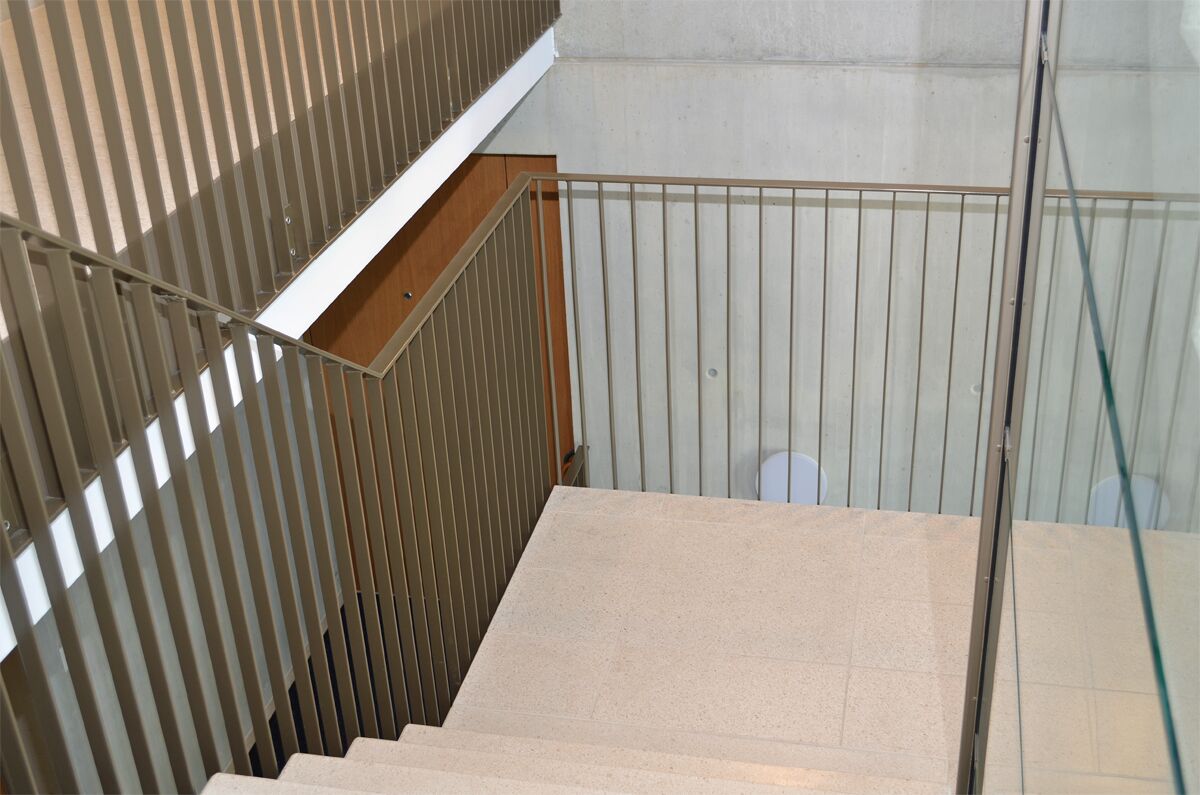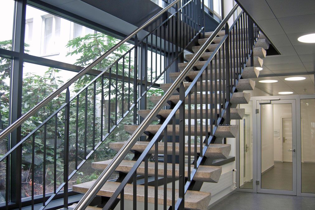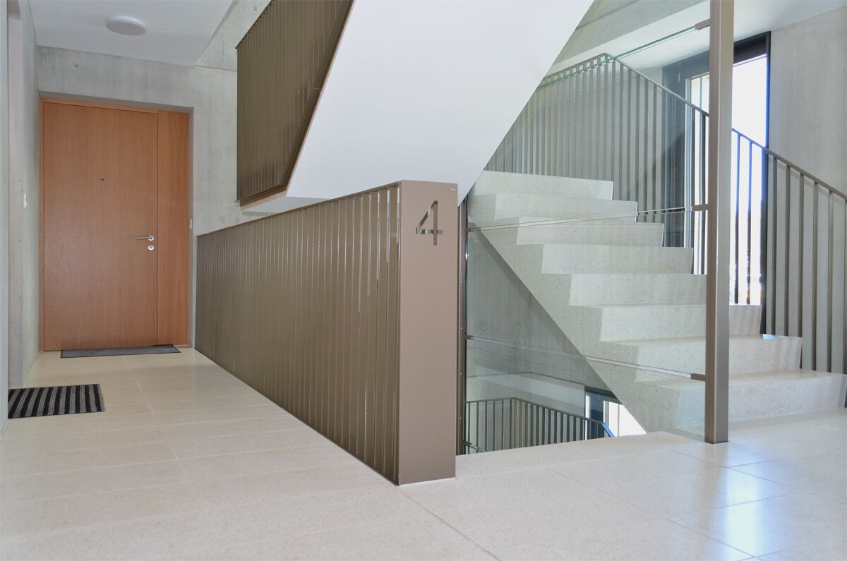 Kostengünstige Geländer im Treppenhaus werden oft als Staketengeländer ausgeführt. Möglich sind jedoch auch Geländer mit ganz oder teilweise geschlossenen Füllungen